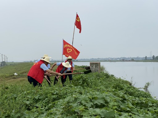 • 党旗在抗洪一线飘扬