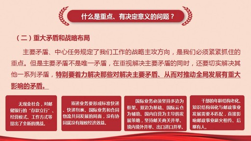 比如,对邮政寄递业务,我们的战略部署就是要聚焦“四大业务”,把握好“两个原则,五个抓手,三步走战略”。