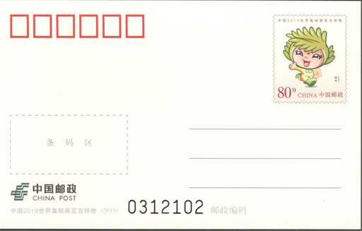 中国邮政于5月20日发行《中国2019世界集邮展览吉祥物》普通邮资明信片一套1枚。明信片邮票规格为25毫米×30毫米,明信片规格为125毫米×78毫米。