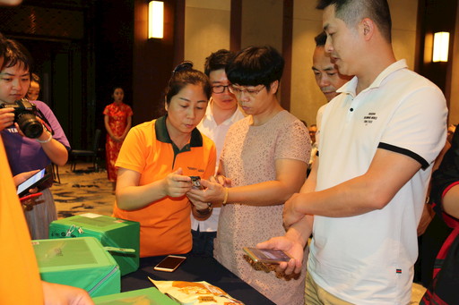 海南邮政在启动会上表示,将加快绿色环保包装材料、循环包装工具和电子面单的推广应用,积极推进绿色运输,推动形成绿色生产服务方式,倡导绿色生活和消费方式,营造“绿色快递,人人有为”的良好氛围。图为邮政工作人员在会场介绍循环包装的使用方法,并邀请客户进行寄件体验。  □记者  陈佳佳  摄影报道
