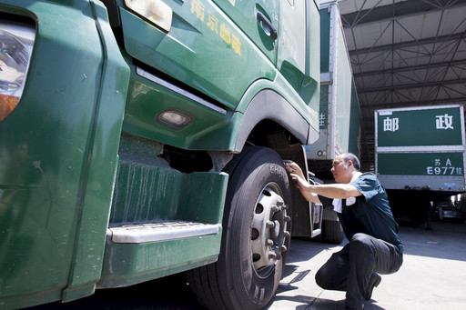 围绕“战高温、保安全”的主题,南京邮区中心局结合夏季生产运行特点,近期开展了一系列车辆巡检工作,确保行车安全。图为该中心局干线班副班长刘毅正顶着炎热对出班邮车进行检修。 □徐行 摄影报道