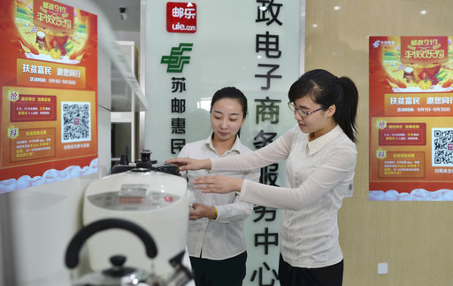 8月31日,江苏省徐州市邮政分公司启动“919电商节”活动,与本地多家农产品企业密切合作,依托邮政自身的电商平台“苏邮惠民”“徐邮微信”、邮乐购和线下的“邮掌柜”站点等渠道优势,推广农特产品。此外,今年的“919电商节”,该分公司还增加了为小家电商品提供从上线、库存管理、打包、发货、售后等“一条龙”服务。图为丰县邮政分公司的邮乐购站点将小家电商品上柜。 □刘立明 陈海彬 摄影报道