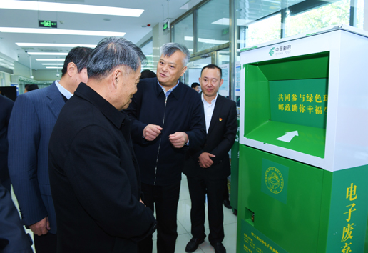 走进百万庄支局营业厅,杨传堂一行首先观看了中国邮政绿色行动宣传片。中国邮政于2018年率先启动了绿色行动,系统部署绿色包装、绿色运输和绿色金融三大工程,下发了绿色行动三年规划,全力以赴将绿色行动推向深入,致力于治理企业包装污染和运输污染、致力于支持全社会污染防治工作。李丕征还介绍了中国邮政成立绿色包装创新实验室、加强绿色包装技术创新研发等情况,杨传堂对此给予肯定。