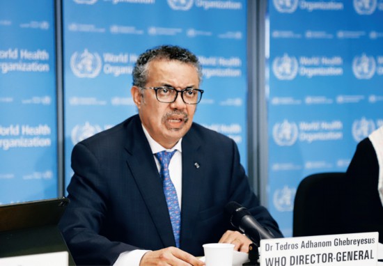 2020年2月17日,世界卫生组织总干事谭德塞在世卫组织有关新冠肺炎的例行记者会上说,中国疾病预防控制中心最新发布的有关新冠肺炎的流行病学报告,为世卫组织向各国提出防控疫情的合理建议提供了帮助。 新华社记者 陈俊侠/摄