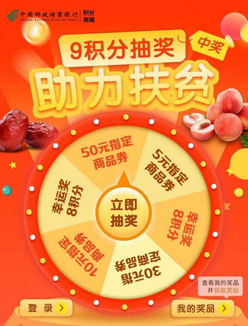 可使用9信用卡积分参与一次抽奖