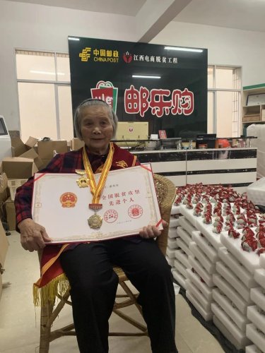 在壬田镇凤岗村,90岁的廖秀英老人在邮政电商合作社的帮助下,和她的“廖奶奶咸鸭蛋”一并走红,为全球减贫提供最佳案例。