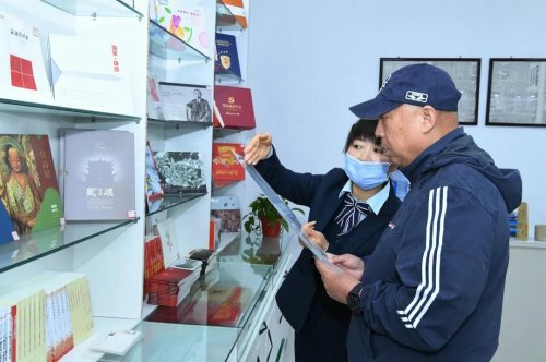 来到哈达铺红军长征纪念馆正门旁的哈达铺红色邮局,展柜上陈列的物品让人挑花了眼。不仅有哈达铺纪念明信片、大公报、党史党情图书等,还有宕昌县本地特产中药材、点心、香菇酱等产品。每天都有上百名游客到此,对关于长征题材的邮票、明信片和首日封等邮品产生了浓浓的兴趣。一名来自内蒙古的游客一进来就被展柜上的明信片吸引得移不开眼,他选购了一枚明信片,高兴地说道:“我要把明信片寄回去,留下这份珍贵的哈达铺记忆。”与此同时,主题邮局内一场线上直播活动正在如火如荼地进行中。