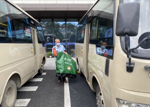 司机搬运“客货邮”专用袋。余杭交通供图