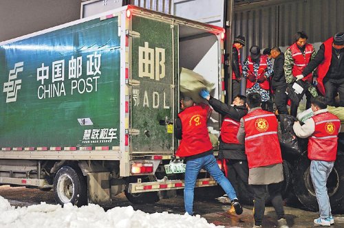 2月4日,为应对暴雪冰冻天气,湖北省天门市邮政分公司机关全体党员干部积极响应号召,深入一线,与员工一起,连夜紧急疏运2万件邮件,有效缓解了邮件处理中心压力,保障了邮运畅通和市民用邮需求。□刘志洪 摄影报道