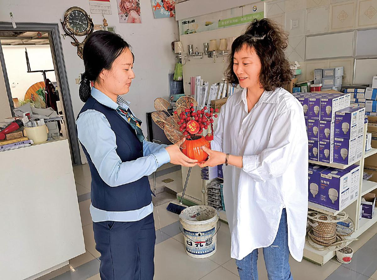 八岭山支局专管员对商户开展节日拜访。 □王曼 摄