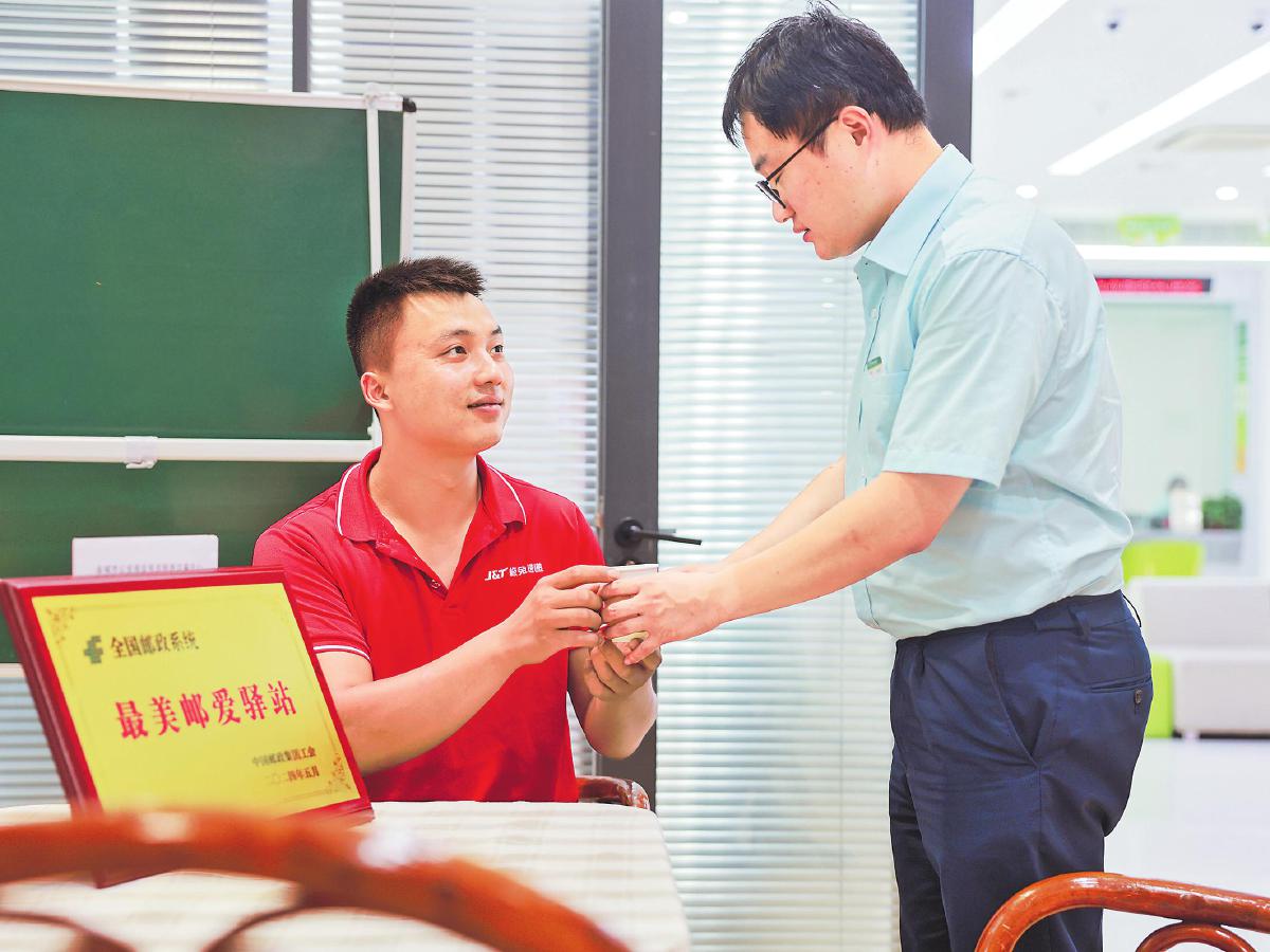这个夏天,江苏省盐城市邮政分公司党委持续打造“邮爱驿站”,在网点配备微波炉、饮水机、雨伞、防暑降温用品、急救药品等,关心关爱外卖小哥、快递小哥、网约车司机等新业态新就业群体,将服务新业态新就业群体真正延伸到基层一线。