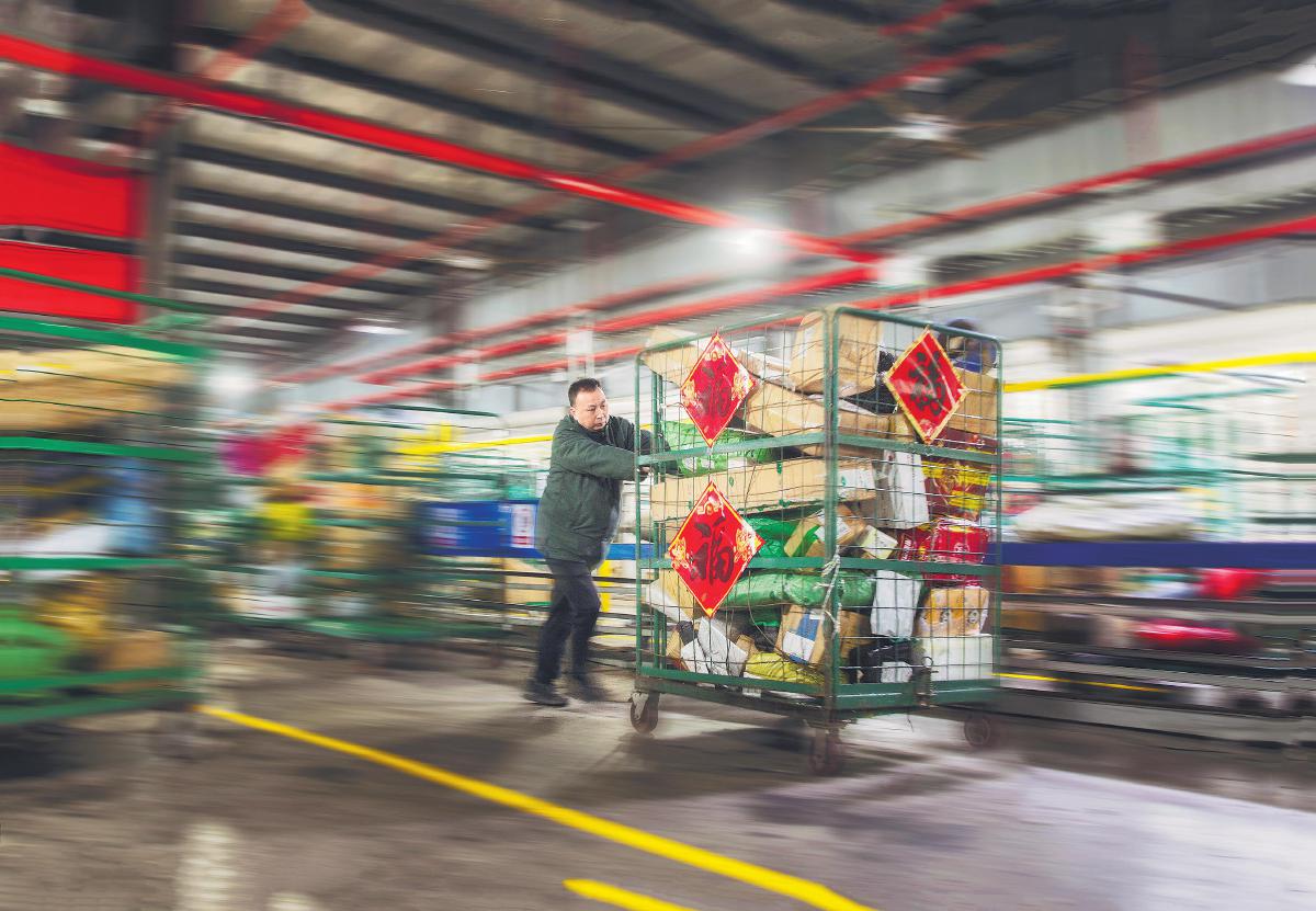 1月27日,江苏常州邮区中心员工忙碌有序地处理邮件。该中心春节期间将全力保障邮件处理。□吴敏 摄