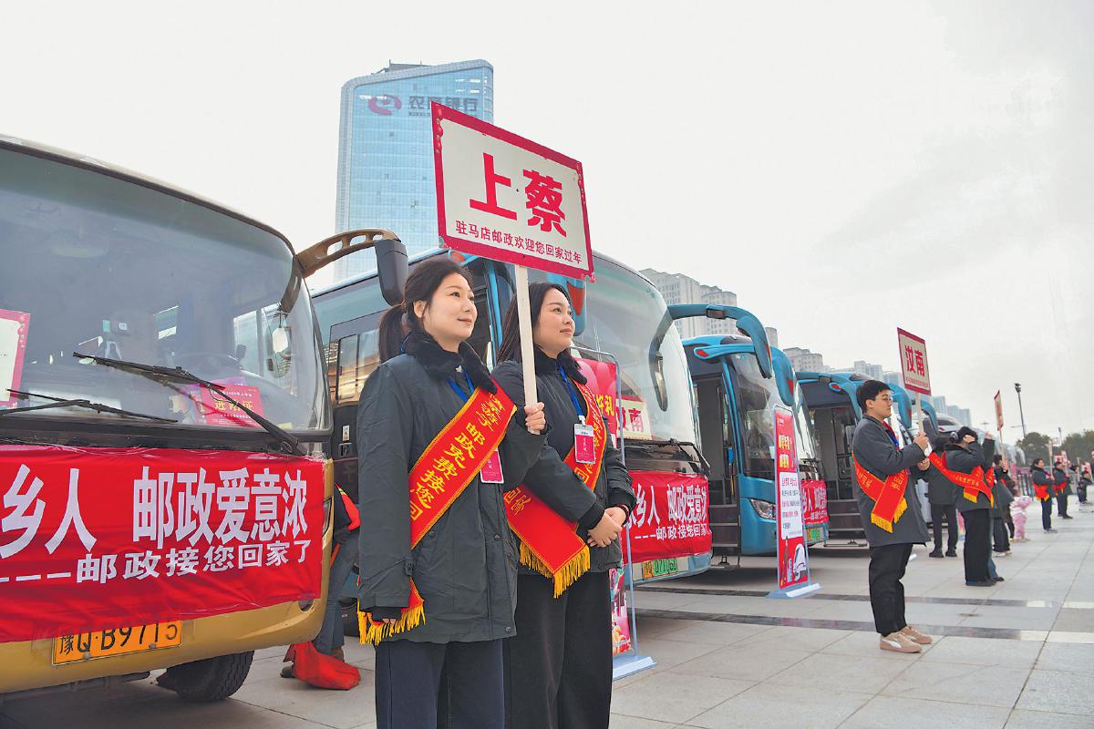 1月21日—27日,河南省驻马店市邮政分公司开展“情系游子,邮政免费接您回家”活动。图为邮政员工在驻马店西站热情欢迎返乡游子。 □贾红伟 摄