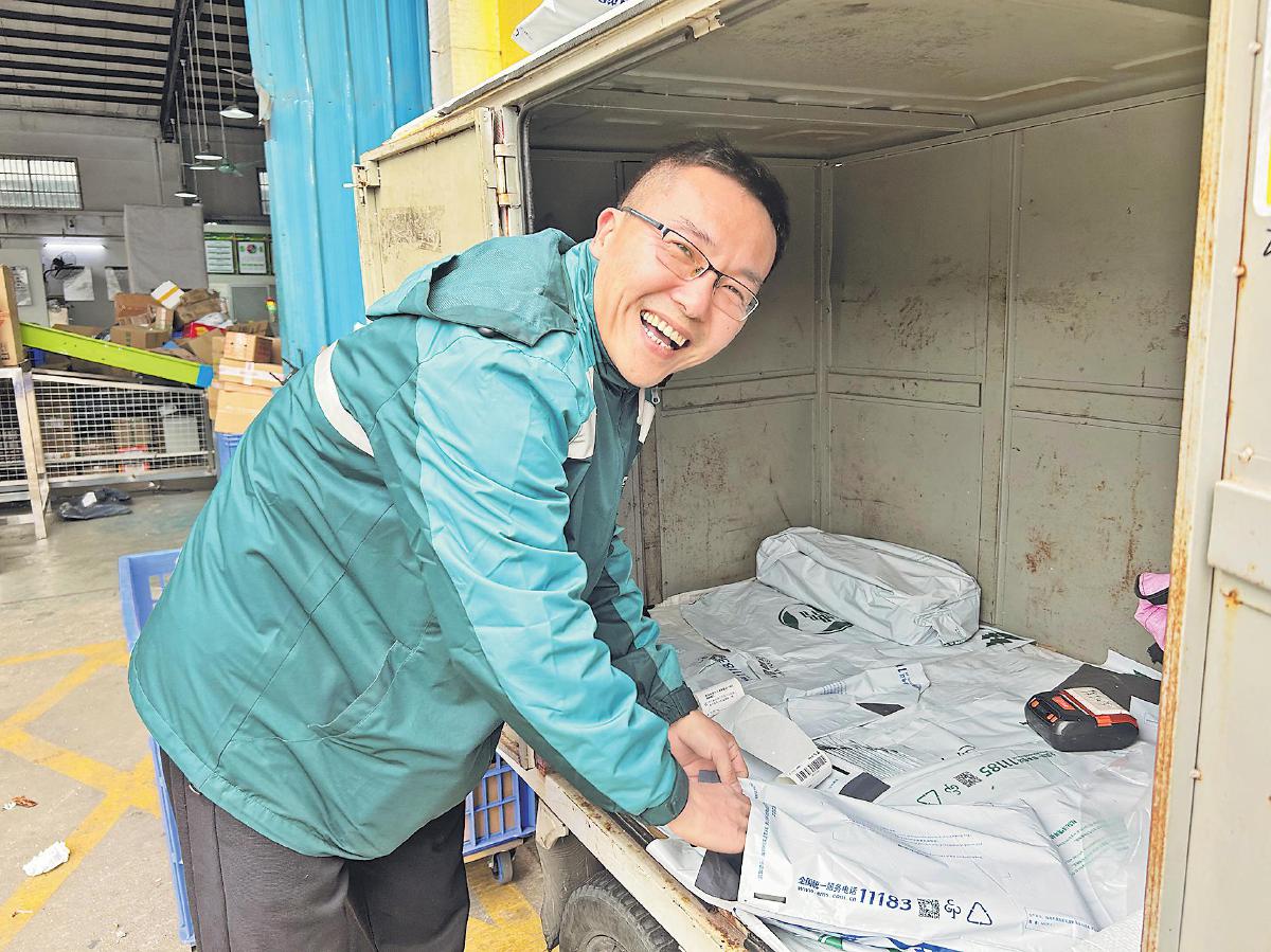 “乐天派”陈敬盛正在处理揽收邮件。