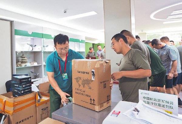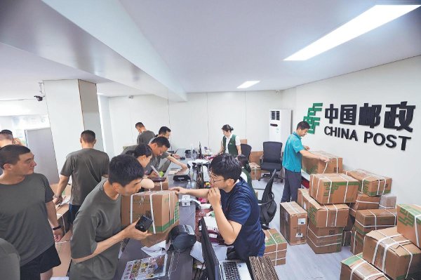 邮政工作人员为官兵收寄包裹,确保当日收寄、当日出口。